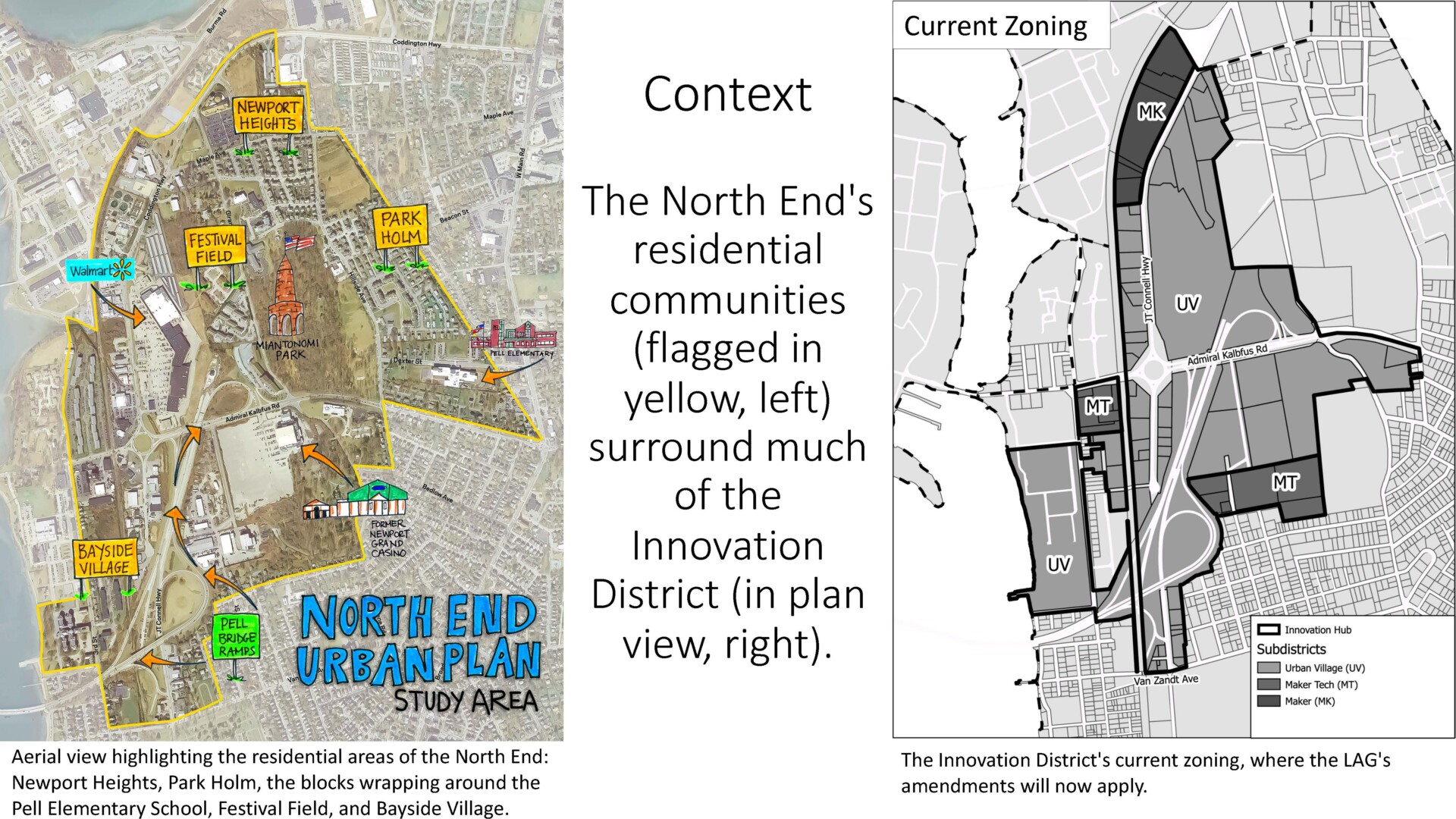 After a 10-month sprint to success, Newport Health Equity Zone (HEZ) residents recently won equitable amendments to the city’s zoning ordinance for its new Innovation District, a mixed-use 40+-acre technology hub adjacent to the North End neighborhood. With the HEZ’s support, the Local Advisory Group (LAG) pushed through three zoning amendments to spur workforce housing in large development projects, sharply define parks as well as civic and open space, and set the ground rules for community benefits agreements based on independent community-impact reports. The North End has been cut off from the rest of the city since the 1960s by the Pell Bridge’s elevated ramp structure; now that those ramps are coming down, much of the Innovation District will be built on that newly-valuable land. With the prospect of displacement and gentrification swamping the residential neighborhood, the Newport HEZ helped launch the LAG in 2021, recruiting Smart Growth America as consultant to convert resident priorities into an equitable-development strategy for the North End. Passed unanimously by the Newport City Council in on May 11, the zoning amendments were the first concrete policy change as a direct result of this process.